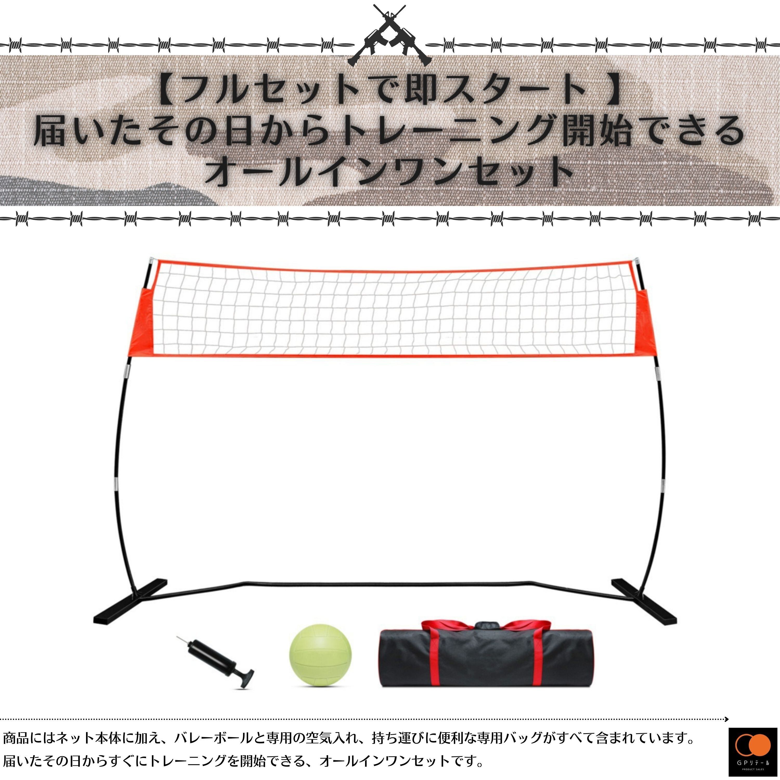【即納品 1~2日で発送】GPリテール バレーボール ネット スパイク・サーブ練習用 高さ調節可能 組み立て簡単 自立式 ポータブル 屋外 屋内 持ち運びバッグ ボール 空気入れ 付き バレーボール 練習器具 ビーチバレー