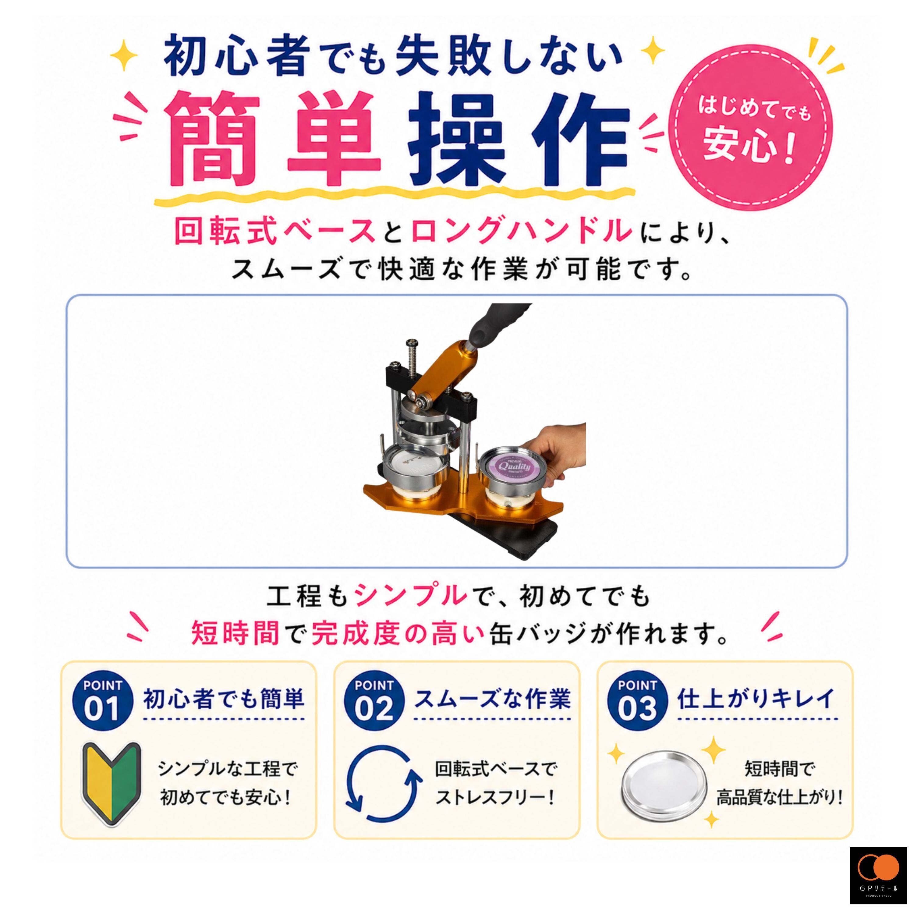 【即納品 1~2日で発送】GPリテール 【初心者でも簡単】 缶バッチメーカー 58mm 100個材料セット 回転式 簡単操作 初心者OK DIY 推し活 イベント 同人 缶バッジマシーン ゴールド