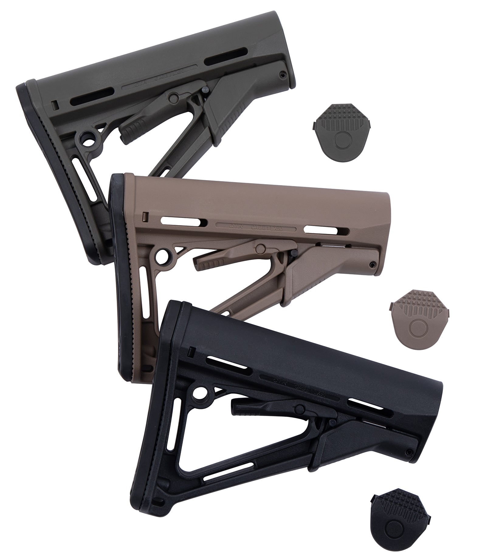 ✅両側面に実物同様の刻印があるリアル刻印仕様「MAGPUL INDUSTRIES CORP」「CTR CAGE1LX50」ラバー製バットパッドにもMAGPULの刻印が入っています。